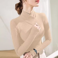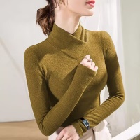 2025秋冬新款洋氣減齡螺紋德絨長袖打底衫,設計感半高領,內搭外穿都時尚