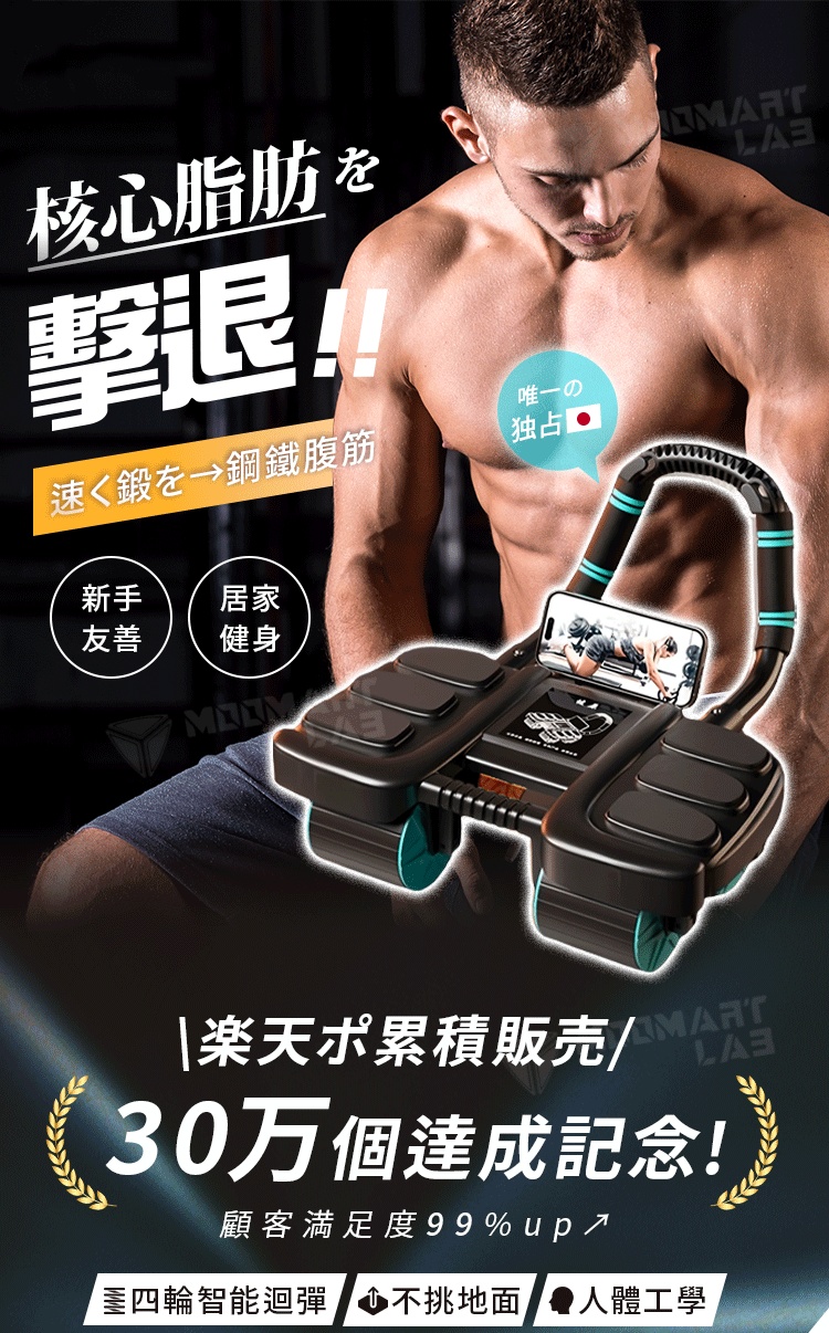 【超核心迴力健腹輪】每天3分鐘,腹肌自然出現!