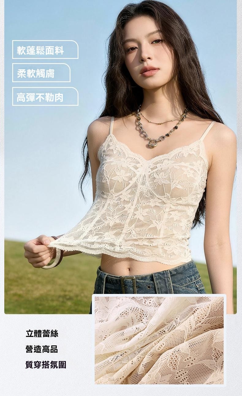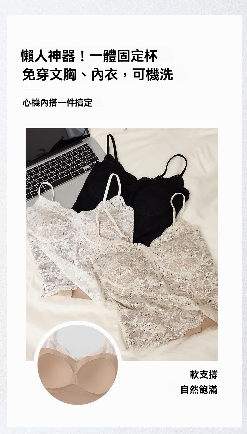 32A抗菌山茶花植萃甜辣蕾絲美背吊帶帶杯墊打底性感內搭