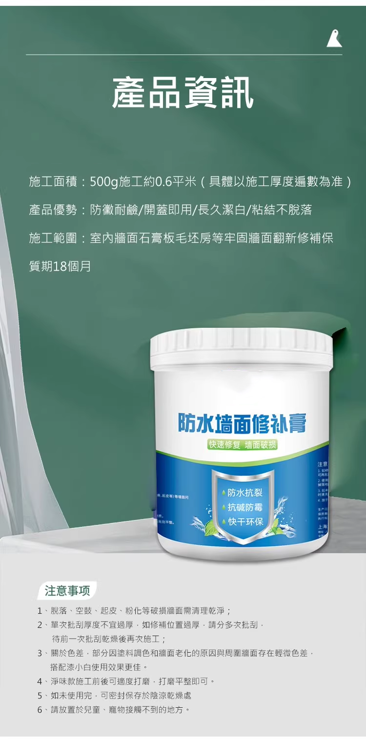 【現貨】新升級三防工藝補墙膏!防水,防污,防霉,抗裂!補一次耐用50年,防水防 污防微!無需調配,不刮腻子不刷漆!